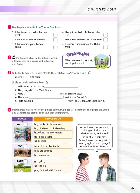 6 Imagine you visited two of the places below. Put a tick (4) next to the things you did when